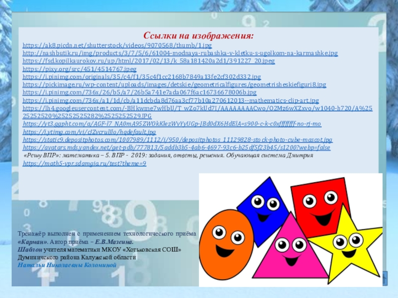 Тренажёр выполнен с применением технологического приёма «Карман». Автор приёма – Е.В.Мазеина.
