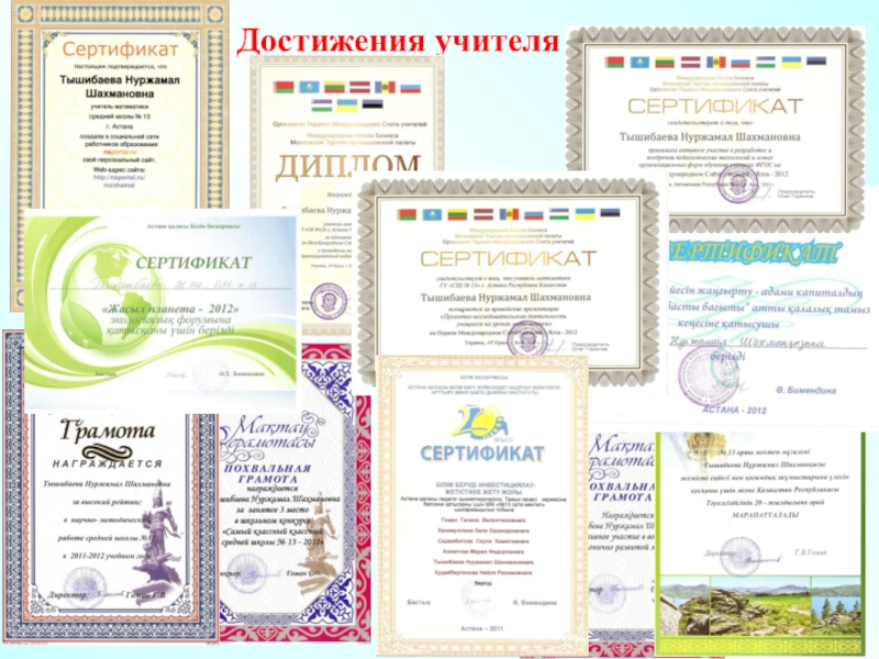 2012-Сертификат. За создание персонального сайта –Web-адрес сайта: http://nspotal.ru/Nurzhamal