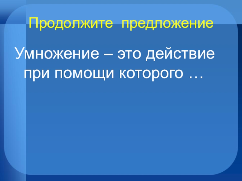 Продолжите предложениеУмножение – это действие при помощи которого …
