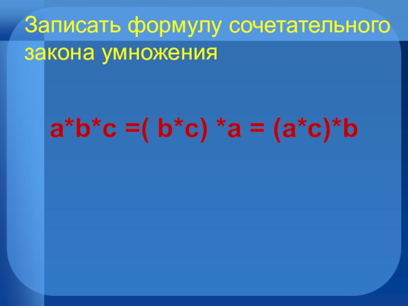 Записать формулу сочетательного закона умноженияa*b*c =( b*c) *a = (a*c)*b