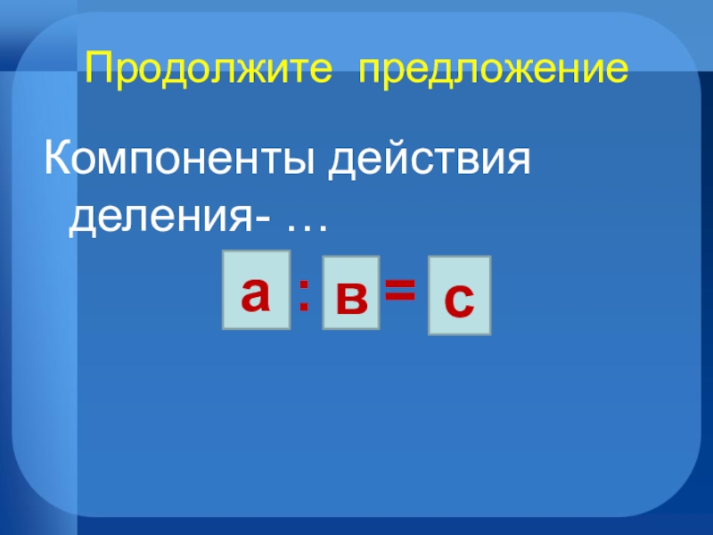Продолжите предложениеКомпоненты действия деления- …а : в = савс