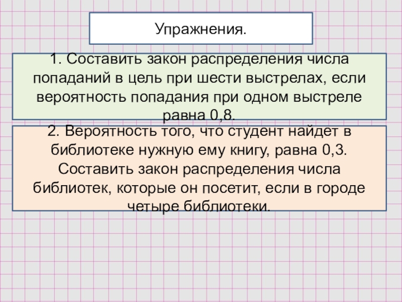 2. Вероятность того, что студент найдет в библиотеке нужную ему книгу, равна 0,3. Составить закон распределения числа библиотек, которые он посетит, если в городе четыре библиотеки.
