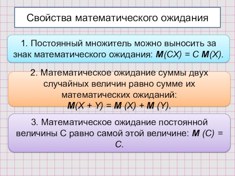 2. Математическое ожидание суммы двух случайных величин равно сумме их математических ожиданий: