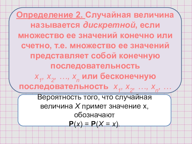 Вероятность того, что случайная величина Х примет значение х, обозначают