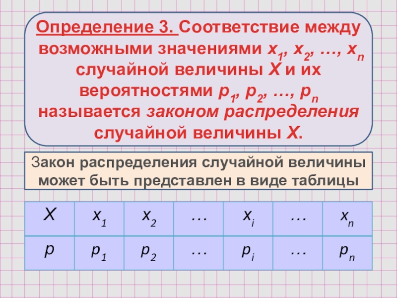 Закон распределения случайной величины может быть представлен в виде таблицы