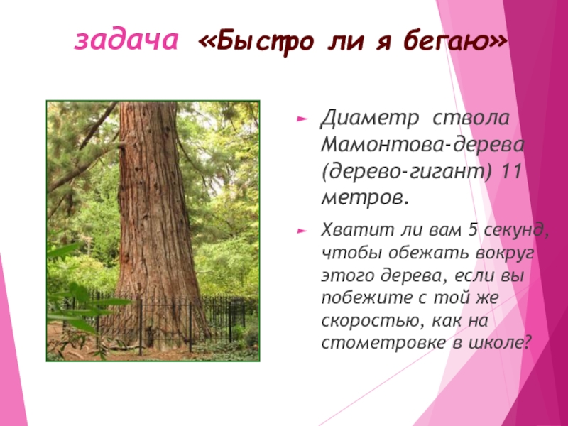 ли вам 5 секунд, чтобы обежать вокруг этого дерева, если вы побежите с той же скоростью, как на стометровке в школе?