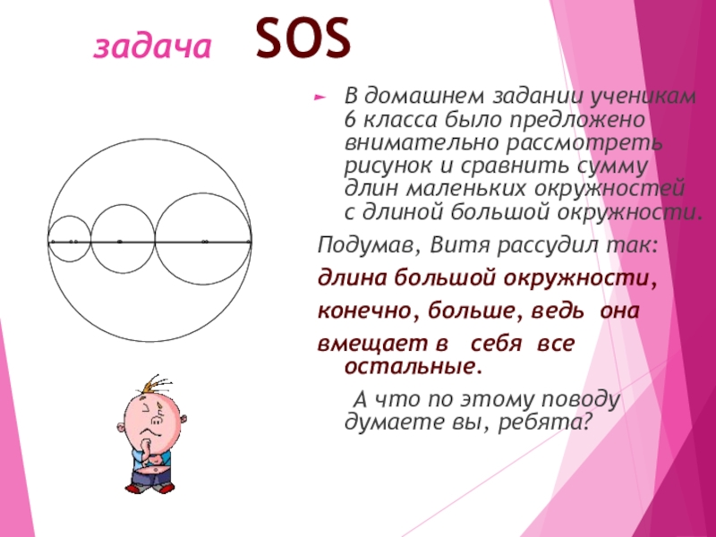 и сравнить сумму длин маленьких окружностей с длиной большой окружности.