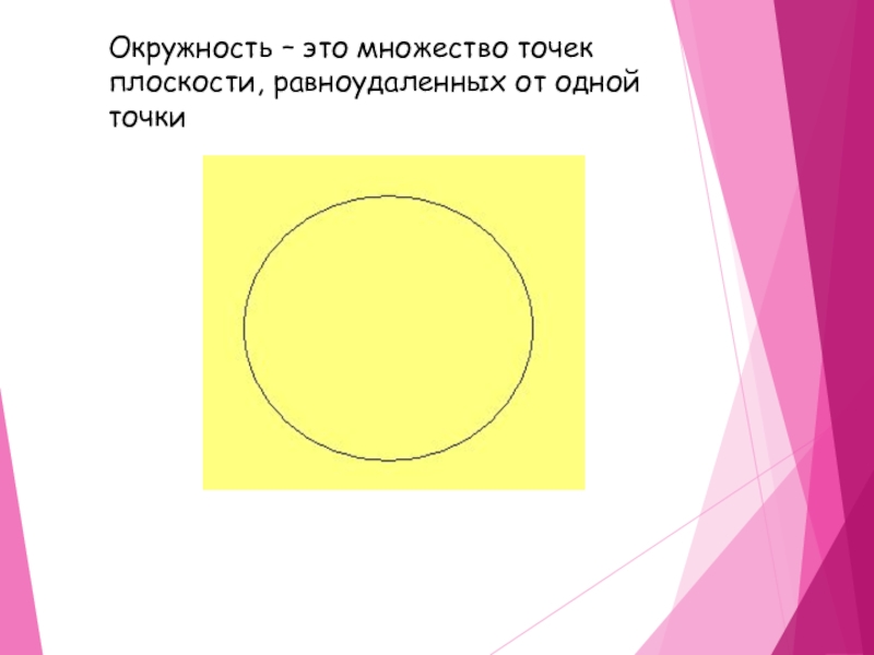 Слайд 5Окружность – это множество точек плоскости, равноудаленных от одной точки
