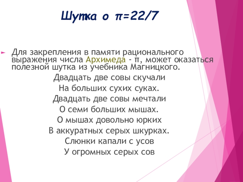 Для закрепления в памяти рационального выражения числа Архимеда -