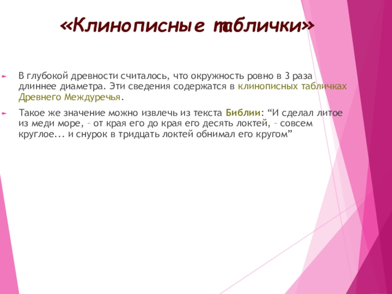 длиннее диаметра. Эти сведения содержатся в клинописных табличках Древнего Междуречья.