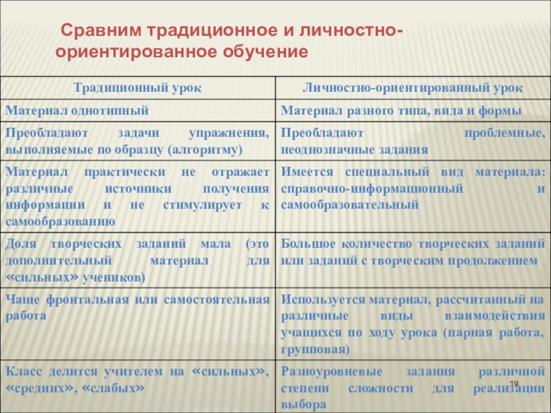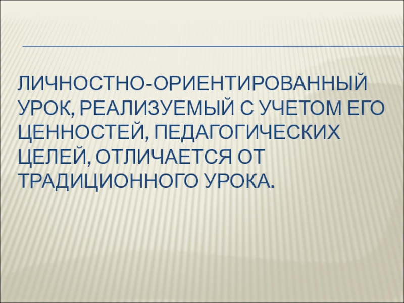 Слайд 18ЛИЧНОСТНО-ОРИЕНТИРОВАННЫЙ УРОК, РЕАЛИЗУЕМЫЙ С УЧЕТОМ ЕГО ЦЕННОСТЕЙ, ПЕДАГОГИЧЕСКИХ ЦЕЛЕЙ, ОТЛИЧАЕТСЯ ОТ