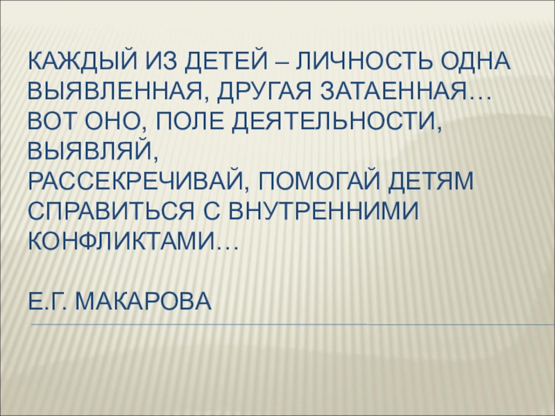 Слайд 2КАЖДЫЙ ИЗ ДЕТЕЙ – ЛИЧНОСТЬ ОДНА ВЫЯВЛЕННАЯ, ДРУГАЯ ЗАТАЕННАЯ…