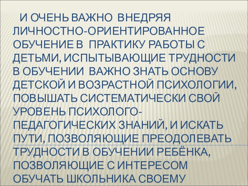 Слайд 21 И ОЧЕНЬ ВАЖНО ВНЕДРЯЯ ЛИЧНОСТНО-ОРИЕНТИРОВАННОЕ ОБУЧЕНИЕ В ПРАКТИКУ РАБОТЫ С