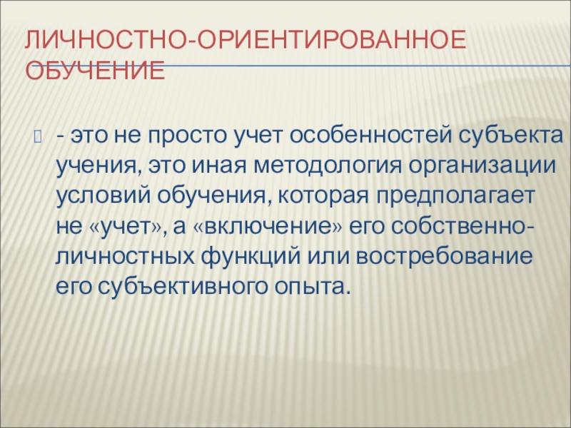методология организации условий обучения, которая предполагает не «учет», а «включение» его собственно-личностных функций или востребование его субъективного опыта.