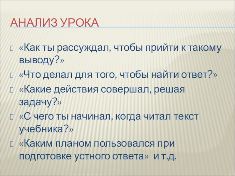 «Каким планом пользовался при подготовке устного ответа» и т.д.
