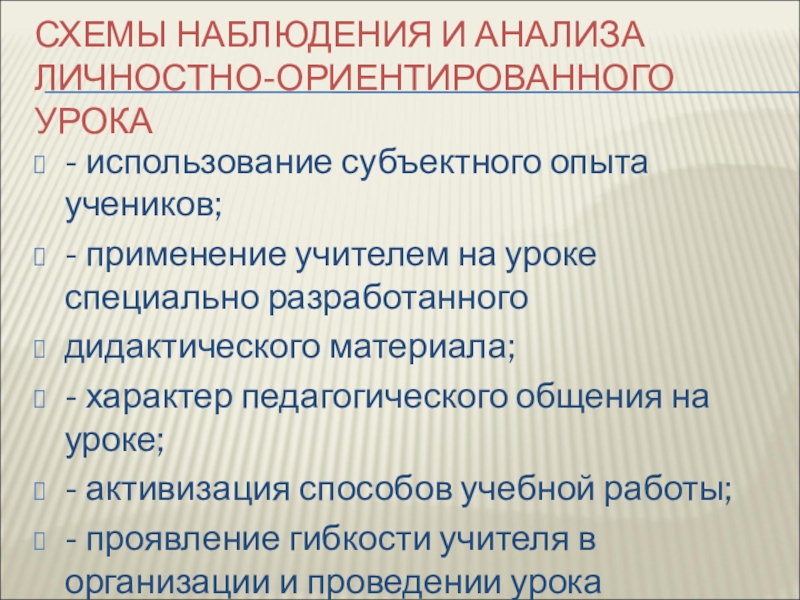 Слайд 20СХЕМЫ НАБЛЮДЕНИЯ И АНАЛИЗА ЛИЧНОСТНО-ОРИЕНТИРОВАННОГО УРОКА