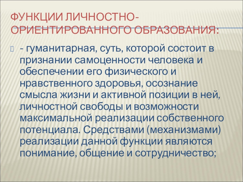 Слайд 7ФУНКЦИИ ЛИЧНОСТНО-ОРИЕНТИРОВАННОГО ОБРАЗОВАНИЯ: