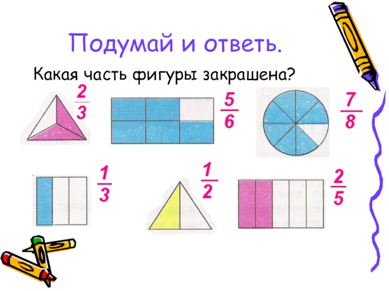 Прочитайте дроби. Что показывает числитель и знаменатель каждой дроби?