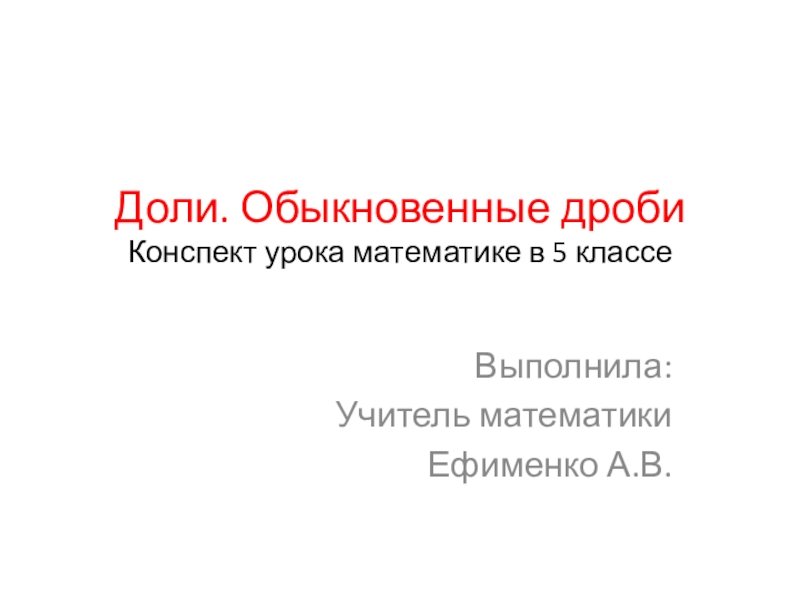 Доли. Обыкновенные дроби Конспект урока математике в 5 классе Выполнила: Учитель математикиЕфименко А.В.