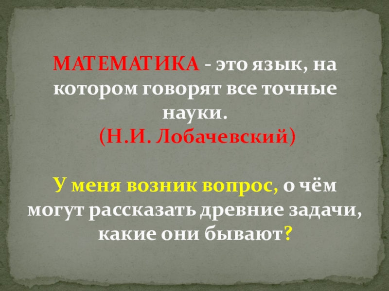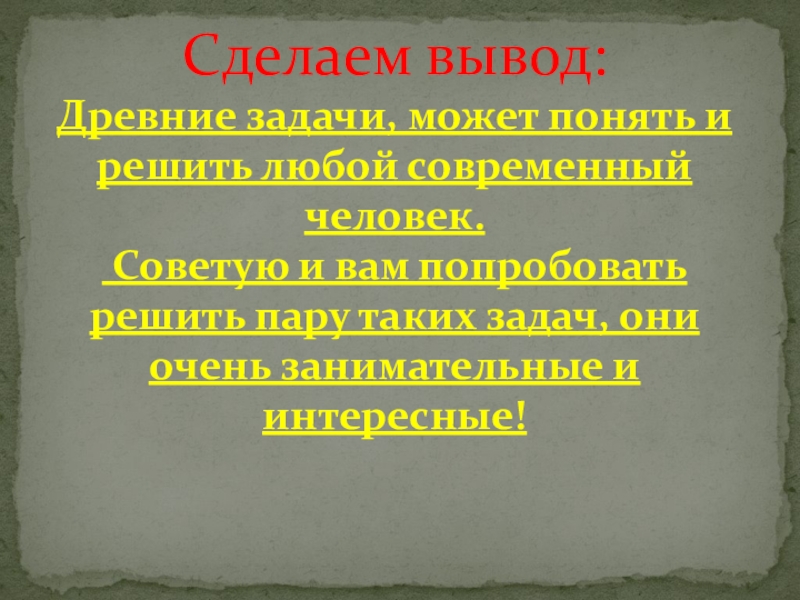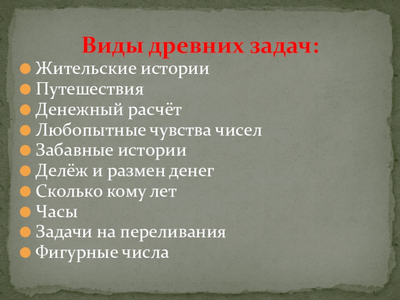 Виды древних задач: