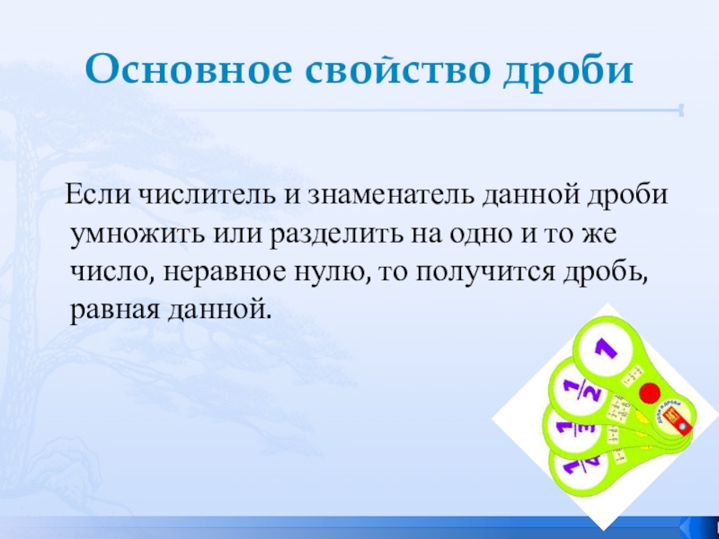 дроби умножить или разделить на одно и то же число, неравное нулю, то получится дробь, равная данной.