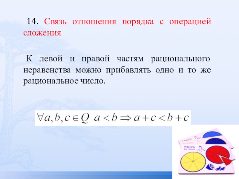 Слайд 35 14. Связь отношения порядка с операцией сложения
