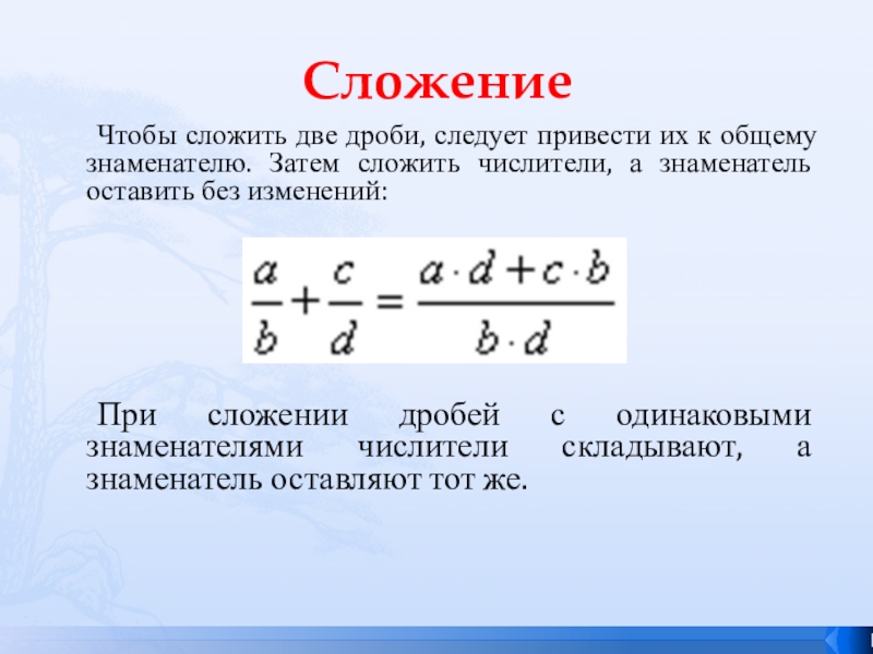 данных дробей, а знаменатель равен произведению их знаменателей, то есть: