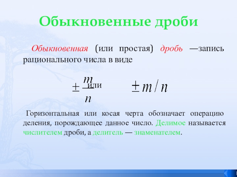 Обыкновенная (или простая) дробь —запись рационального числа в