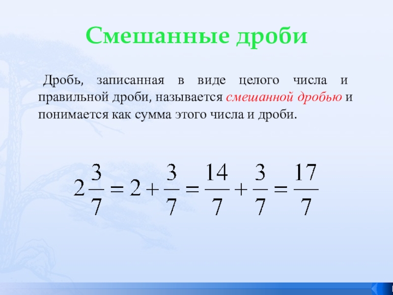 смешанной дробью и понимается как сумма этого числа и дроби.