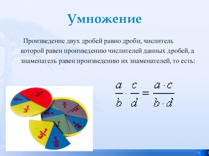 Произведение двух дробей равно дроби, числитель которой равен произведению числителей