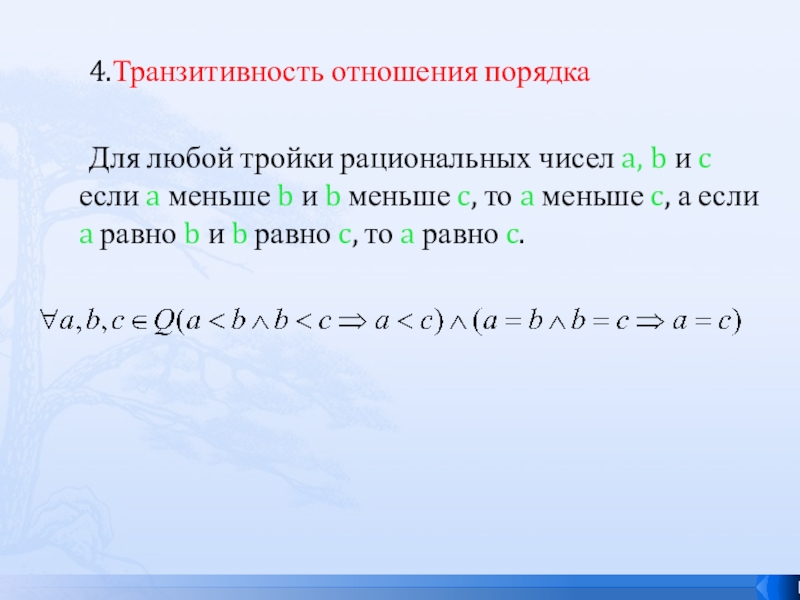 если a меньше b и b меньше c, то a меньше c, а если a равно b и b равно c, то a равно c.