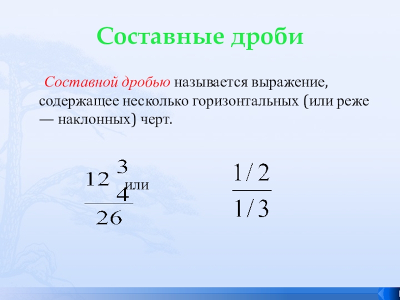 Составной дробью называется выражение, содержащее несколько горизонтальных (или реже —
