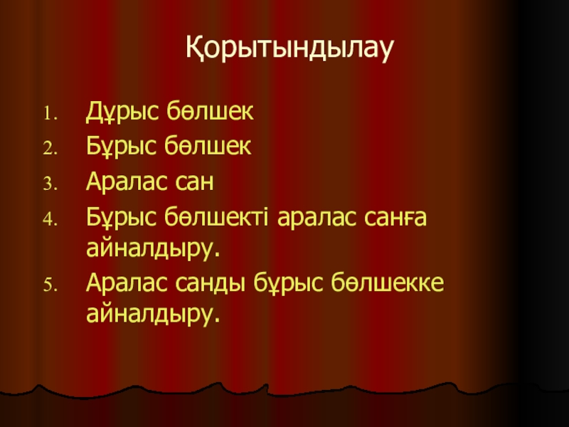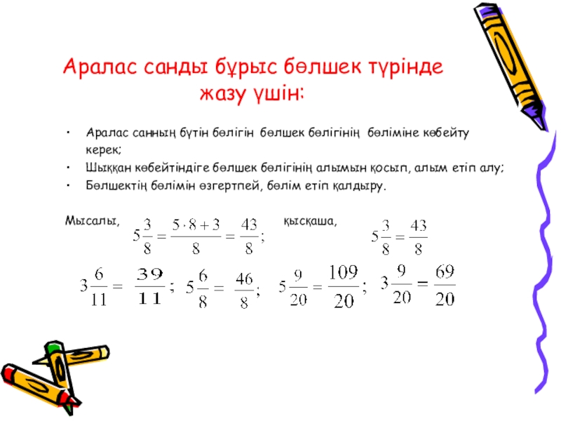 Слайд 7Бұрыс бөлшекті аралас санмен жазу үшін: