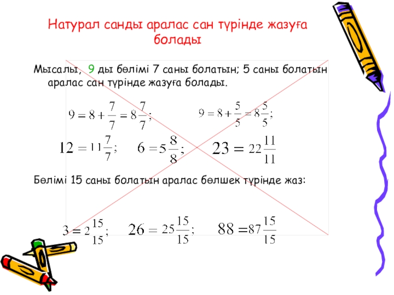 Слайд 9Натурал санды аралас сан түрінде жазуға болады