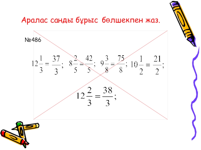 Аралас санды бұрыс бөлшекпен жаз.№486