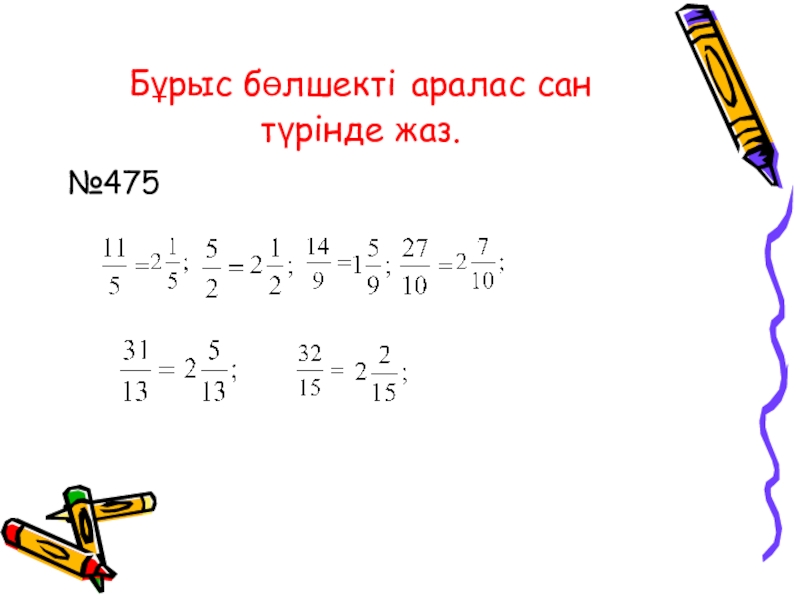 Слайд 13Аралас санды бұрыс бөлшекпен жаз.