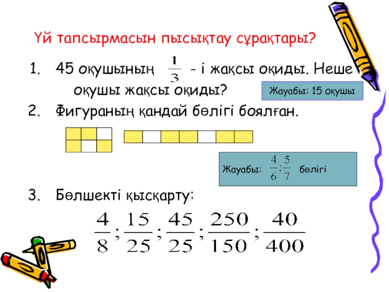 Үй тапсырмасын пысықтау сұрақтары?45 оқушының    - і жақсы оқиды. Неше