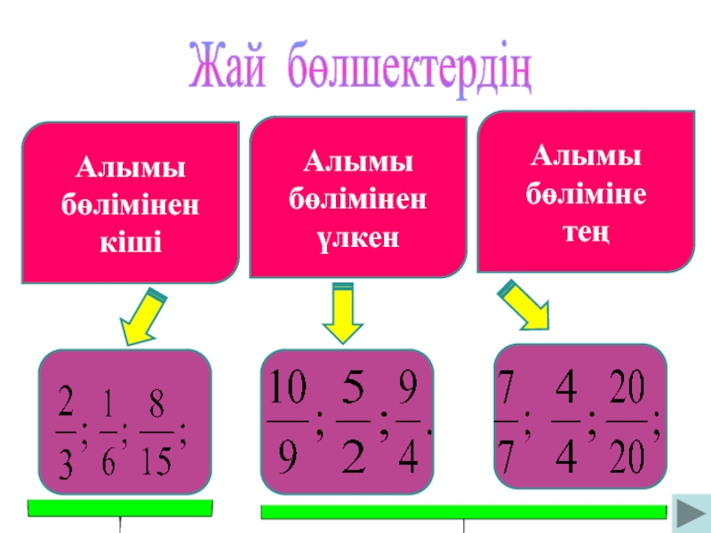 Жай бөлшектердің Алымы бөлімінен кішіАлымы бөлімінен үлкенАлымы бөліміне тең