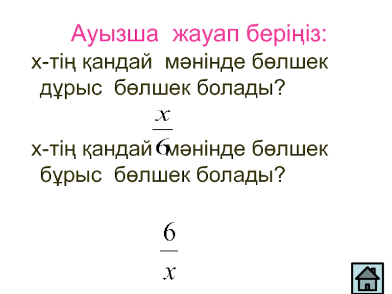 Ауызша жауап беріңіз: х-тің қандай мәнінде бөлшек дұрыс бөлшек болады?     х-тің қандай мәнінде