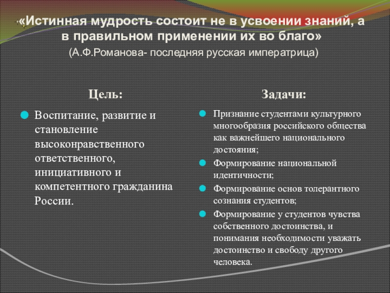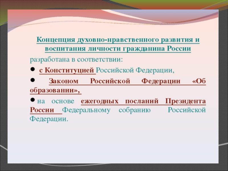 национальному воспитательному идеалу - это высоконравственный, творческий, компетентный гражданин России, принимающий судьбу Отечества как свою личную, осознающий ответственность за настоящее и будущее своей страны, укорененный в духовных и культурных традициях многонационального народа Российской Федерации»