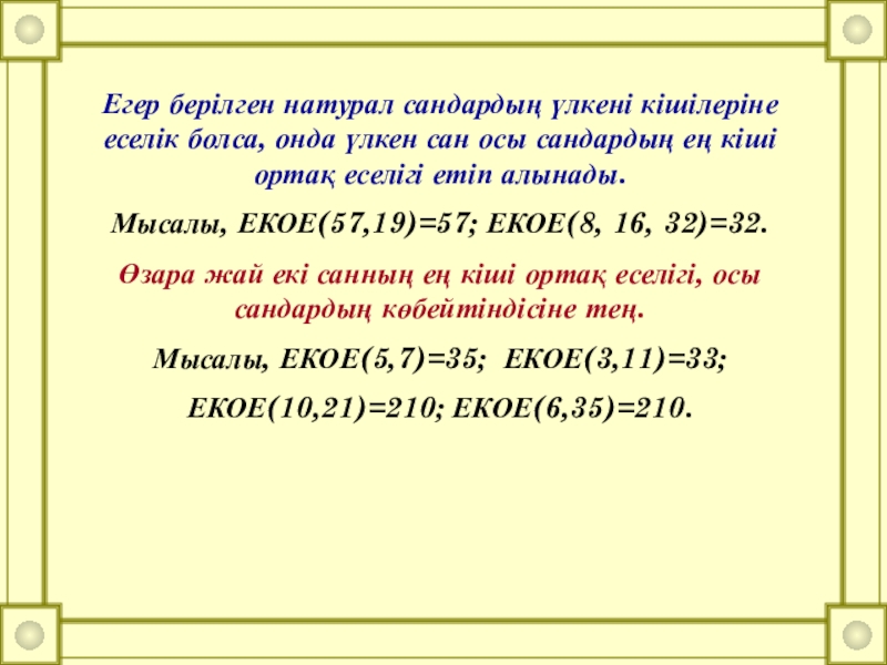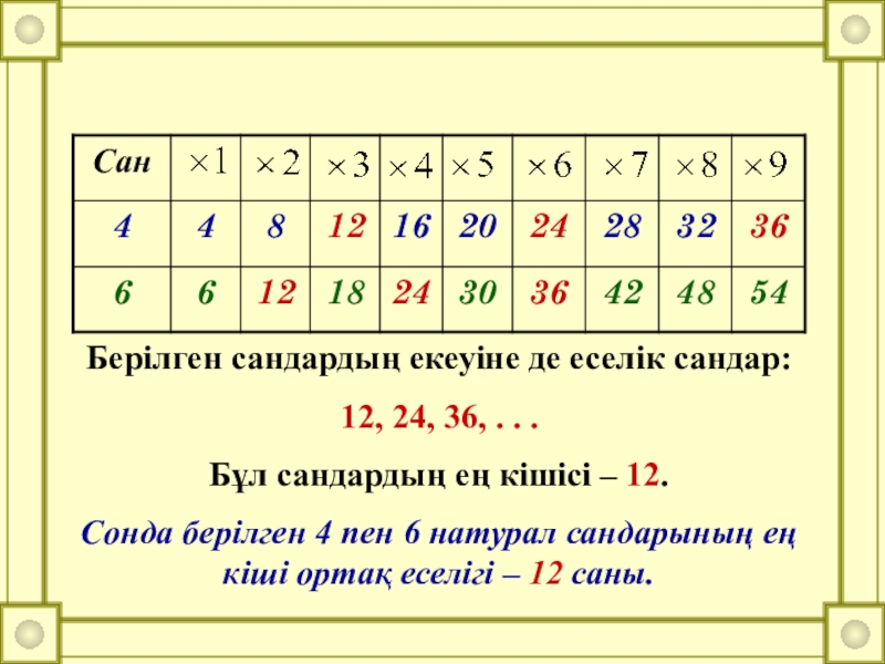 4 пен 6 сандарының ең кіші ортақ еселігі 12. Жазылуы: ЕКОЕ (4;6)=12.