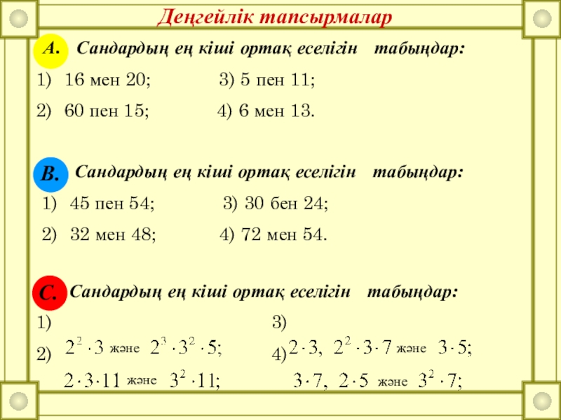 Сандардың ең кіші ортақ еселігін табыңдар: