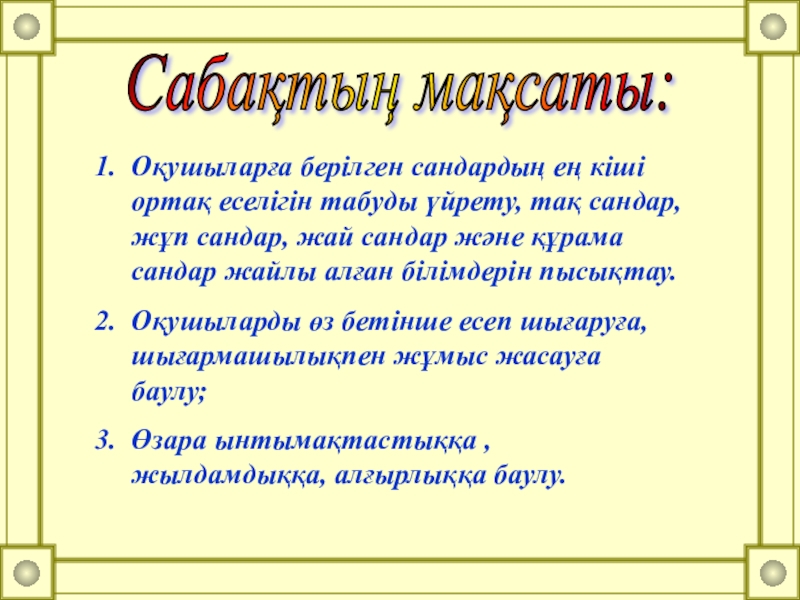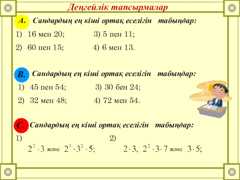 Сандардың ең кіші ортақ еселігін табыңдар: