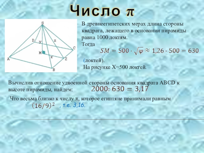 Что весьма близко к числу π, которое египтяне принимали равным