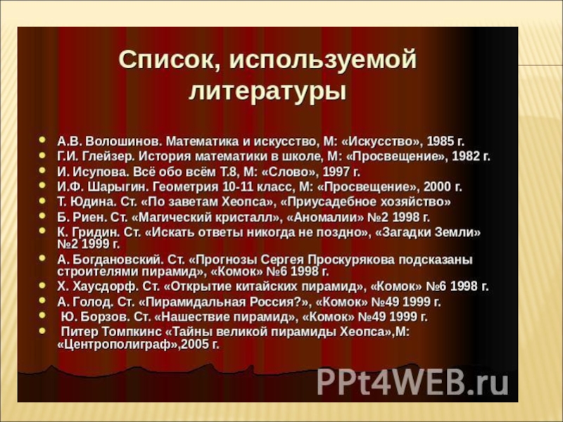 Это сайт презентаций, где можно хранить и обмениваться своими презентациями, докладами, проектами, шаблонами в формате PowerPoint с другими пользователями. Мы помогаем школьникам, студентам, учителям, преподавателям хранить и обмениваться учебными материалами.