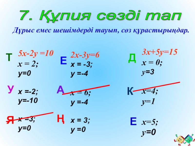 Дұрыс емес шешімдерді тауып, сөз құрастырыңдар.