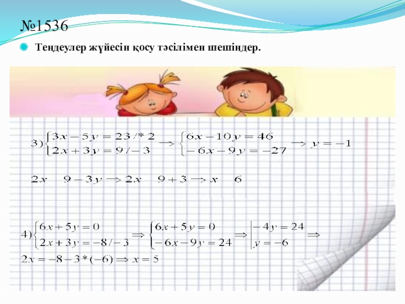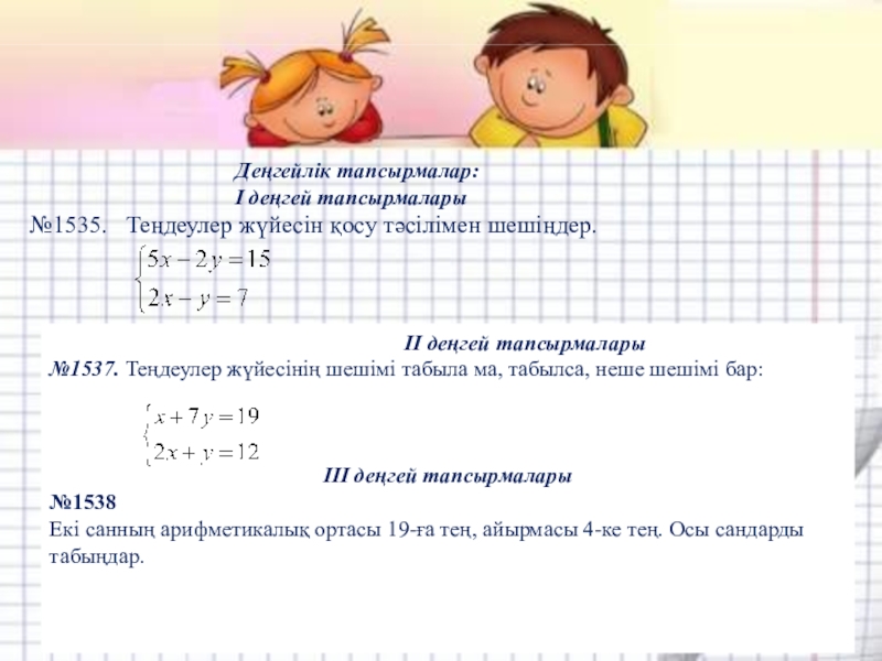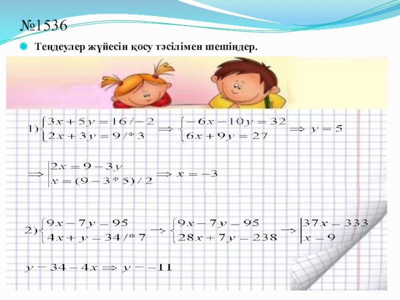 №1537. Теңдеулер жүйесінің шешімі табыла ма, табылса, неше шешімі бар: