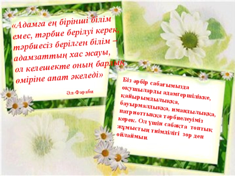 Біз әрбір сабағымызда оқушыларды адамгершілікке, қайырымдылыққа, бауырмалдыққа, имандылыққа, патриоттыққа тәрбиелеуіміз керек. Ол үшін сабақта топтық жұмыстың тиімділігі зор деп ойлаймын.