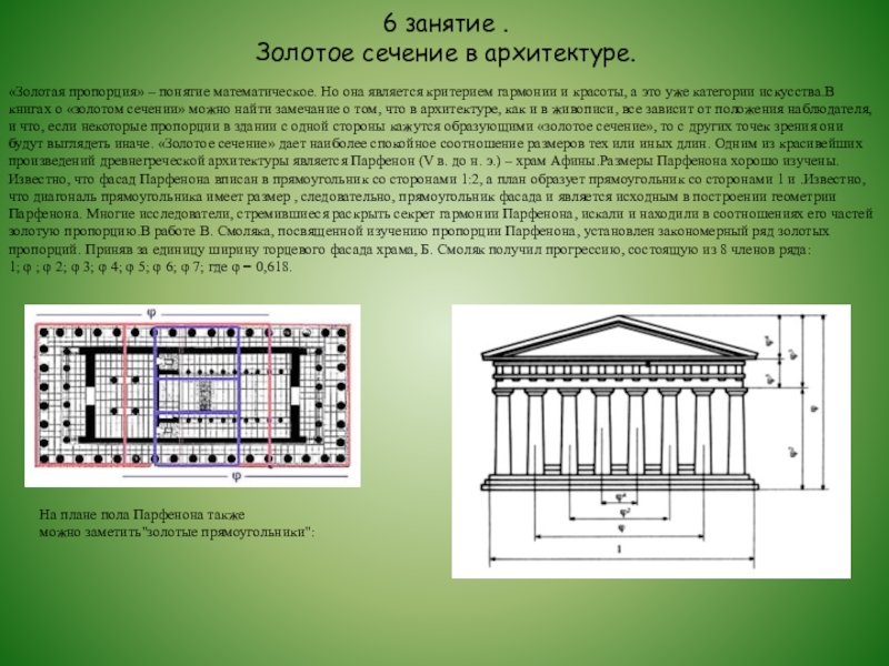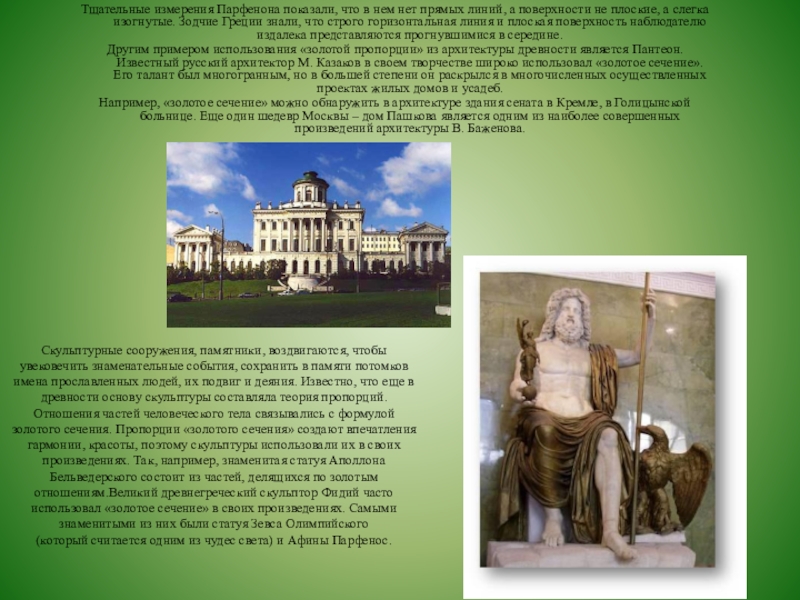 отношениям.Великий древнегреческий скульптор Фидий часто использовал «золотое сечение» в своих произведениях. Самыми знаменитыми из них были статуя Зевса Олимпийского
