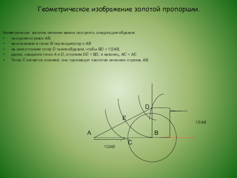 Золотым сечением называется такое деление отрезка, при котором большая часть так относится к целому, как меньшая часть к большей.